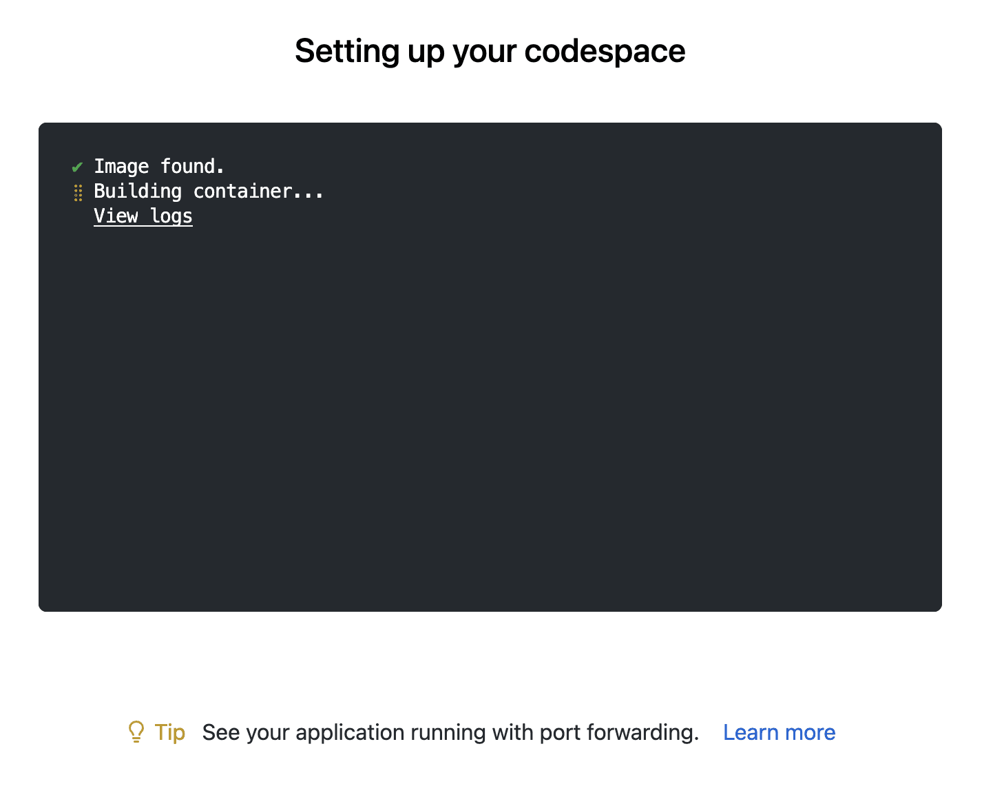 Next a window opens and the Codespace is built. This may take a few minutes.
