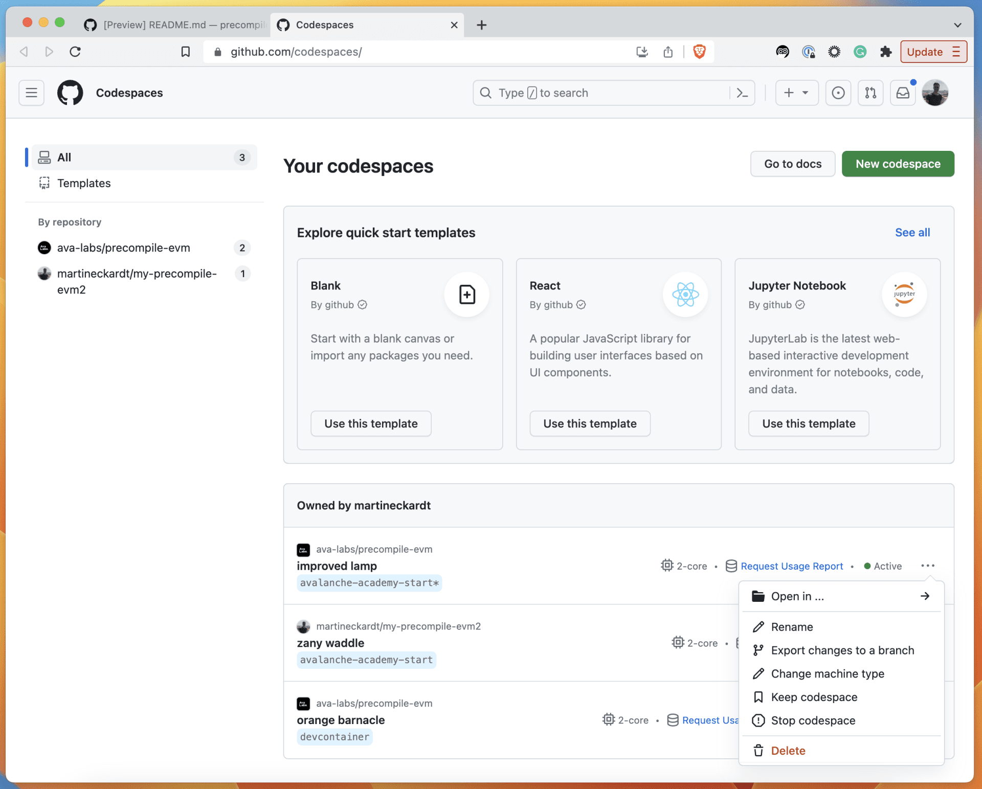 Reopen Codespaces